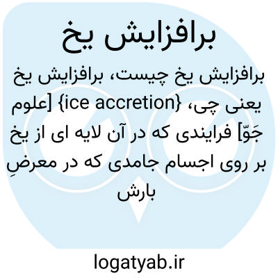{ice accretion} [علوم جَوّ] فرایندی که در آن لایه ای از یخ بر روی اجسام جامدی که در معرضِ بارش یخ زن یا مه اَبَرسرد یا قطرک های اَبر قرار دارند تشکیل می شود