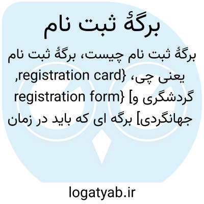 {registration card, registration form} [گردشگری و جهانگردی] برگه ای که باید در زمان ورود فرد به مهمانخانه یا همایش یا نظایر آن پر شود