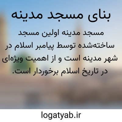 مسجد مدینه اولین مسجد ساختهشده توسط پیامبر اسلام در شهر مدینه است و از اهمیت ویژهای در تاریخ اسلام برخوردار است. این مسجد نه تنها مرکز عبادت و نماز بود، بلکه محل گردهمایی مسلمانان، مشورت و آموزش نیز به شمار میرفت. ساخت آن نمادی از پایهگذاری یک جامعه اسلامی منظم و مبتنی بر آموزههای دینی بود.