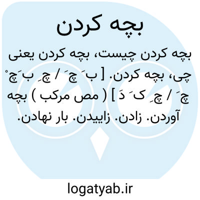 بچه کردن. [ ب َ چ َ / چ ِ ب َچ ْ چ َ / چ ِ ک َ دَ ] ( مص مرکب ) بچه آوردن. زادن. زاییدن. بار نهادن. زهیدن. پس انداختن. || جوجه برآوردن، چنانکه در پرندگان: آن را در باغ بگذاشتند و خایه و بچه کردند. ( تاریخ بیهقی ). هرگاه غوک بچه کردی مار بخوردی. ( کلیله و دمنه ). || کپک زدن. مایه کردن: آب لیمو بچه کرده است یا آب غوره بچه کرده است یا شراب بچه کرده است؛ کپک زده و کفک برآورده و مایه کرده است. || پرپر شدن. ورقه ورقه شدن: طلق و پر در لای کتاب بچه می کند؛ یعنی پری خرد از ریشه پری بزرگ پدید می آید یا طلق ورقه می شود. ( یادداشت مؤلف ).