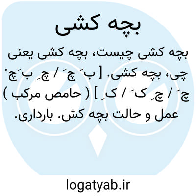 بچه کشی. [ ب َ چ َ / چ ِ ب َچ ْ چ َ / چ ِ ک َ / ک ِ ] ( حامص مرکب ) عمل و حالت بچه کش. بارداری. آبستنی. ( ناظم الاطباء ). || تربیت و نگاهداری جنس ماده برای فرزند زادن و بچه گرفتن از آن.