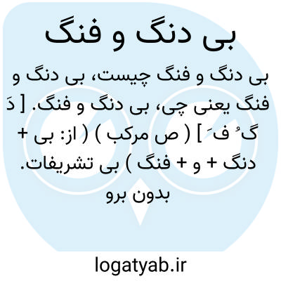 بی دنگ و فنگ. [ دَ گ ُ ف َ ] ( ص مرکب ) ( از: بی + دنگ + و + فنگ ) بی تشریفات. بدون برو بیا. بدون تجمل. بدون جاه و جلال. بی مشکل و گرفتاری. و رجوع به دنگ و فنگ شود.