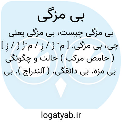 بی مزگی. [ م َ زَ / زِ / م َزْ زَ / زِ ] ( حامص مرکب ) حالت و چگونگی بی مزه. بی ذائقگی. ( آنندراج ). بی طعمی. بی لذتی و طعم مکره و نفرت انگیز. ( ناظم الاطباء ). بی طعمی. صفت بی مزه. فقد یکی از طعمهای نه گانه. تفاهت. ( یادداشت مؤلف ). شیخ الرئیس در قانون گوید بیمزگی بر دو گونه است یکی حقیقی و یکی حسی. حقیقی آن است که در واقع عادم مزه است چون آب، و حسی آن است که ذائقه از آن چیزی درنیابد مانند مزه آهن و مس. چه ذائقه بعلت شدت کثافت این دو فلز که مانع از آن است که از آن چیزی تحلیل شده با زبان درآمیزد مزه آن دو حس نکند. لیکن اگر بتدبیر و چاره مس و آهن را به اجزاء صغار درآرند مانند غباری، آنگاه هر دو را طعمی قوی باشد. || مجازاً، افراط در کاری که مطبوع نباشد گفتاری یا کرداری. ( از یادداشت مؤلف ). ناخوش آیندی و نفرت و کراهت. ( از ناظم الاطباء ). بی لطفی. ( آنندراج ).