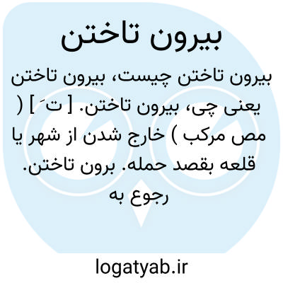 بیرون تاختن. [ ت َ ] ( مص مرکب ) خارج شدن از شهر یا قلعه بقصد حمله. برون تاختن. رجوع به برون تاختن شود.