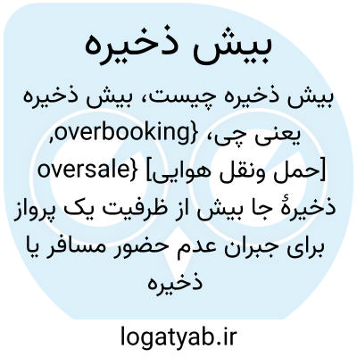 {overbooking, oversale} [حمل ونقل هوایی] ذخیرۀ جا بیش از ظرفیت یک پرواز برای جبران عدم حضور مسافر یا ذخیره سازی های مکرر