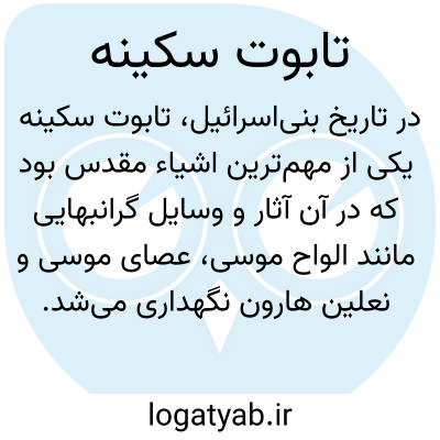 بیان چگونگی تابوت سکینه - چون بدایت غرابت تابوت سکینه در زمان بعثت موسی علیه السلام والتحیة بوقوع انجامیده و در اثناء بیان حکایت آیة بعضی از حالات آن مذکور خواهد گردید. در این مقام تحریر کیفیت ترتیب آن مناسب نمود. ( والاعانة من اﷲ الورود ) در معالم التنزیل و بعضی کتب معتبره مسطور است که چون آدم علیه السلام از روضات دارالسلام بعالم محنت فرجام نزول فرمود حضرت واهب العطایا تابوتی که سه گز طول داشت و دو گز عرض و از چوب شمشاد ساخته شده بود و صور جمیع انبیاء در آن موضوع بود بجهت اطمینان خاطر شریفش فرو فرستادو تا آخر ایام حیات در حیطه تصرف آدم بود و بعد ازفوت خلیفه اعظم بطریقه توارث به اولاد منتقل می شد تا به ابراهیم علیه التحیة والتسلیم انتقال یافت و از خلیل الرحمن به اسمعیل که اسن فرزندانش بود رسید و پس از فوت اسماعیل پسرش قیدار آنرا در تحت تصرف آورد، و بنی اسحاق از قیدار طلبیده قیدار دست رد بر سینه ملتمس ایشان نهاده و بین الجانبین غبار نزاع ارتفاع یافته آخرالامر شبی قیدار از هاتفی شنید که این تابوت را به پسر عم خویش یعقوب تسلیم نمای و قیدار تابوت را برگردون نهاده بکنعان برده به اسرائیل سپرده و همچنین از یعقوب علیه السلام به اولاد امجادش انتقال می یافت تا آنکه بدست موسی کلیم اﷲ افتاد و موسی در اواخر ایام زندگانی بمقتضای وحی ربانی فرمود تا آن دو لوح را که در حین غضب بر زمین زده شکسته بود با دولوح دیگر که بعد از آن کرامت شده بود و طشتی که ملائکه قلوب انبیاء را در آن می شستند و نعلین و عمامه و اثواب و عصاء هرون و یک ظرف از من که در تیه نزول می یافت در آن تابوت نهند و بنی اسرائیل بر این جمله بتقدیم رسانیدند و روایتی آنکه عصای موسی را نیز بموجب وصیتش در آن تابوت گذاشتند و این قول بغایت ضعیف می نماید زیرا که عصای موسی بروایت اکثر چهل گز و بقول اقل ده گز طول داشت و درازی تابوت بموجبی که نوشته شده زیاده از سه گز نبوده و محمدبن جریر الطبری و بعضی دیگر از سالکان مسالک سخنوری آورده اند که تابوت سکینه را موسی علیه السلام از فلزات ساخته اشیاء مذکوره را در آن نهاده بود و همچنین درباب سکینه مورخان اختلاف کرده اند روایتی آنکه سکینه صورتی بود مشابه آدمی که چون امری حادث گشتی آن تابوت در تکلم آمده اسرائیلیان را بدانچه متضمن صلاح ایشان بودی راه نمودی و زمره ای گفته اند که سکینه جانوری بود سر و دم او مانند سر و دم گربه و بر دو کتف خود دو جناح داشت و بعضی گفته اند که آن دوبال از زمرد و زبرجد بود و هر گاه که بنی اسرائیل در معارک قتال آواز او را می شنیدند ایشان را بوجدان فتح و ظفر یقین می شد فرقه ای بر آن رفته اند که آن جانور دو سر داشت و گروهی از سکینه به ریح هفافه روح متکلم و نور ساطع تعبیر کرده اند و بر هر تقدیر تابوت سکینه در نزول حوادث و حدوث وقایع موجب اطمینان قلوب و سبب تسکین کروب بنی اسرائیل بود و هر گاه یهود را سفری پیش آمد ( ی ) آن تابوت را در پیش می نهادند و او در سیر آمده چون بمنزل میرسید قرار می گرفت و بنی اسرائیل در حرکت و سکون متابع او بودند و آن تابوت گاه بدست انبیاء و احیاناً در خزاین ملوک و گاه بتصرف عظماء و عباد بنی اسرائیل می بود تا وقتی که بنی اسرائیل از حکام عمالقه شکست یافته آن عطیه را کفار بیغما بردند... در معالم التنزیل از ابن عباس رضی اﷲ عنه منقول است که تابوت سکینه و عصای موسی در بحیره طبریه موجود است و آن دو چیز غریب قبل از قیام قیامت نوبت دیگر سمت ظهور خواهد یافت. ( والعلم عنداﷲ تعالی ). ( حبیب السیر چ خیام ج 1 صص 102- 103 ). در تاریخ طبری مذکور است که بعد از فوت الیسع بنی اسرائیل بسلوک طریق فسق و فساد اشتغال نمودند و احکام اوراق توریة را برطاق نسیان نهادند و ابواب ظلم و عناد بر روی روزگار خود بگشودند بنابر آن مالک الملک علی الاطلاق یکی از ملوک عمالقه را بر آن داشت که از جانب مغرب لشکری بر سر یهود کشید و ایلاق که در آن زمان حاکم اسرائیلیان بود سپاهی یراق کرده با تابوت سکینه بمقاتله اهل بغض و کینه نامزد فرمود و اسرا