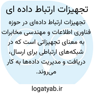 اصطلاح «تجهیزات ارتباط دادهای» در حوزه رایانه، فناوری اطلاعات و مهندسی مخابرات به معنای تجهیزاتی است که در شبکههای ارتباطی برای ارسال، دریافت و مدیریت دادهها به کار میروند. این تجهیزات شامل سختافزارها و ابزارهایی میشوند که امکان انتقال اطلاعات بین دو یا چند دستگاه را فراهم میکنند و میتوانند دادهها را به شکل دیجیتال یا آنالوگ منتقل کنند. نمونههایی از این تجهیزات عبارتاند از مودمها، روترها، سوئیچها، کارتهای شبکه، تکرارگرها و هابها. وظیفه اصلی این ابزارها تضمین دقت، سرعت و امنیت انتقال دادهها در شبکههای محلی و گسترده است. در شبکههای کامپیوتری، تجهیزات ارتباط دادهای امکان ارتباط بین کامپیوترها، سرورها و دستگاههای ذخیرهسازی را فراهم میکنند و در مهندسی مخابرات، برای برقراری ارتباط بین مراکز مخابراتی و کاربران استفاده میشوند. این تجهیزات نقش حیاتی در مدیریت جریان دادهها، کاهش خطا و افزایش کارایی شبکه دارند. معادل انگلیسی آن «Data Communication Equipment» یا به اختصار DCE است و در متون تخصصی فناوری اطلاعات و مخابرات به کار میرود.