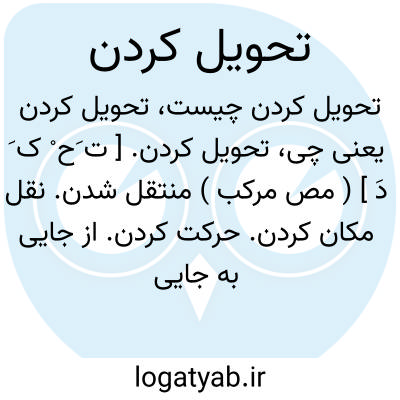 تحویل کردن. [ ت َح ْ ک َ دَ ] ( مص مرکب ) منتقل شدن. نقل مکان کردن. حرکت کردن. از جایی به جایی دیگر شدن: اگر بدان [ آبگیر ] تحویل توانید کرد، در امن و راحت... افتید. ( کلیله و دمنه ). شبانگاه که سیمرغ مشرق به نشیمن مغرب رسید، زن به خانه تحویل کرد. ( سندبادنامه ص 243 ). از عرصه ملک خراسان برخاست وبر جانب قهستان تحویل کرد. ( ترجمه تاریخ یمینی چ 1تهران ص 59 ). تدبیر موافق تقدیر نیامد و ناصرالدین پیش از عود رسول به سرای خلد تحویل کرد. ( ایضاً ص 259 ). تا در سنه احدی و اربعمائة ( 401 هَ. ق. ) از داردنیا به دار عقبی تحویل کرد. ( ایضاً ص 306 ). || سپردن. ( آنندراج ) ( ناظم الاطباء ):