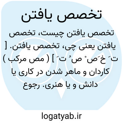 تخصص یافتن. [ ت َ خ َص ْ ص ُ ت َ ] ( مص مرکب ) کاردان و ماهر شدن در کاری یا دانش و یا هنری. رجوع به متخصص شود.