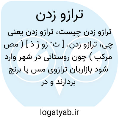 ترازو زدن. [ ت َ زو زَ دَ ] ( مص مرکب ) چون روستائی در شهر وارد شود بازاریان ترازوی مس یا برنج بردارند و در قفای او روان شده آن ترازو را بهم زنند تا آوازی از آن برآید و مردم شهر مطلع شده هنگامه ریشخند گرم کنند. ( آنندراج ):