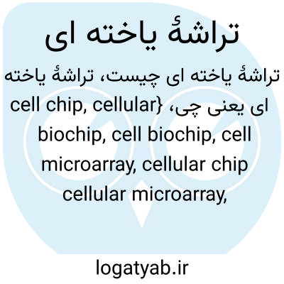 {cell chip, cellular biochip, cell biochip, cell microarray, cellular chip cellular microarray, cell-based microarray, live cell microarray, living microrarray, living chip, cell array} [زیست شناسی-پروتگان شناسی] ریزتراشه ای تخت که بر روی آن یاخته های زنده به شکلی لکه گذاری شده اند که قابلیت رشد خود را حفظ کنند