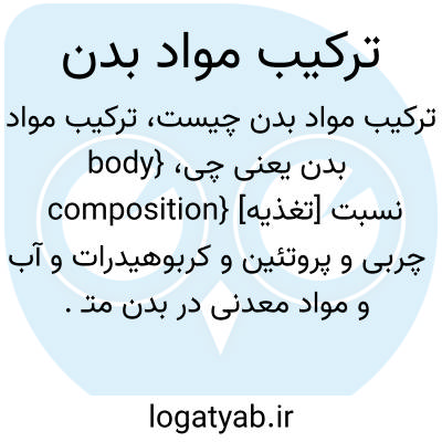 {body composition} [تغذیه] نسبت چربی و پروتئین و کربوهیدرات و آب و مواد معدنی در بدن متـ. ترکیب بدن