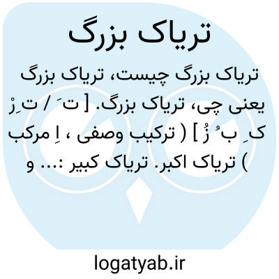 تریاک بزرگ. [ ت َ / ت ِرْ ک ِ ب ُ زُ ] ( ترکیب وصفی، اِ مرکب ) تریاک اکبر. تریاک کبیر:... و بعلم طب نیز رنج برد و تریاک بزرگ او بدست آورد. ( ترجمه ٔطبری بلعمی ). و رجوع به تریاق و ترکیبهای آن شود.