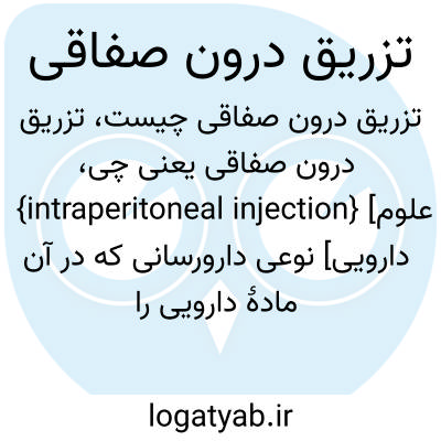 {intraperitoneal injection} [علوم دارویی] نوعی دارورسانی که در آن مادۀ دارویی را مستقیماً به درون حفرۀ صفاق تزریق می کنند متـ. تزریق صفاقی