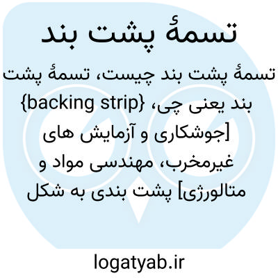 {backing strip} [جوشکاری و آزمایش های غیرمخرب، مهندسی مواد و متالورژی] پشت بندی به شکل تسمه یا نوار فلزی کربنی یا سرامیکی که پس از جوشکاری از کار جدا میشود یا همان جا باقی می ماند