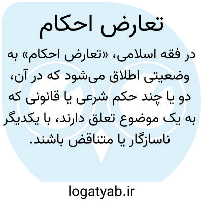 [ویکی فقه] تعارض احکام، تنافیِ مدلول دو یا چند دلیل فقهیِ متعلق به یک موضوع را می گویند.
