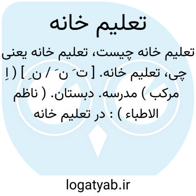 تعلیم خانه. [ ت َ ن َ / ن ِ ] ( اِ مرکب ) مدرسه. دبستان. ( ناظم الاطباء ): در تعلیم خانه «قل ان کنتم تحبون اﷲ» این آموخته. ( ترجمه محاسن اصفهان ص 136 ).