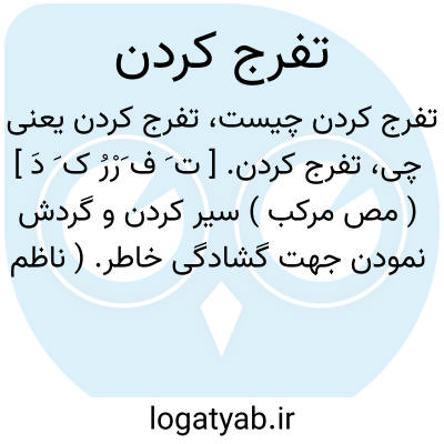 تفرج کردن. [ ت َ ف َرْرُ ک َ دَ ] ( مص مرکب ) سیر کردن و گردش نمودن جهت گشادگی خاطر. ( ناظم الاطباء ). تماشا کردن. سیاحت کردن:...پسر آلتونتاش خوارزمشاه روزی زمستان ببام برآمد تا تفرج کند. ( تاریخ بیهقی چ ادیب ص 410 ).