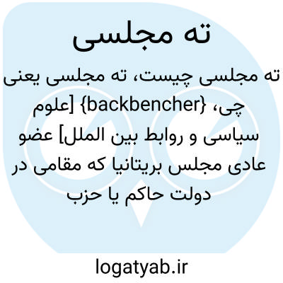{backbencher} [علوم سیاسی و روابط بین الملل] عضو عادی مجلس بریتانیا که مقامی در دولت حاکم یا حزب مخالف ندارد و در ردیف های عقب مجلس می نشیند