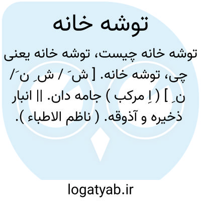 توشه خانه. [ ش َ / ش ِ ن َ/ ن ِ ] ( اِ مرکب ) جامه دان. || انبار ذخیره و آذوقه. ( ناظم الاطباء ). ظاهراً این لفظ غلط است، صحیح توشک خانه است، چه توشک به معنی رخت است چنانکه در برهان و جهانگیری. ( از غیاث اللغات ) ( آنندراج ).
