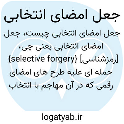 {selective forgery} [رمزشناسی] حمله ای علیه طرح های امضای رقمی که در آن مهاجم با انتخاب حداقل یک پیام بتواند امضای آن را جعل کند