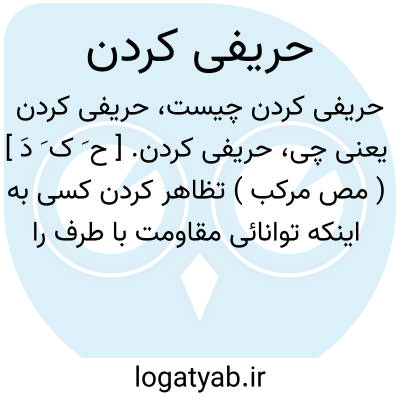 حریفی کردن. [ ح َ ک َ دَ ] ( مص مرکب ) تظاهر کردن کسی به اینکه توانائی مقاومت با طرف را دارد. خود راهم کشتی نمودن. خود را هم سنگ کسی نمودن: