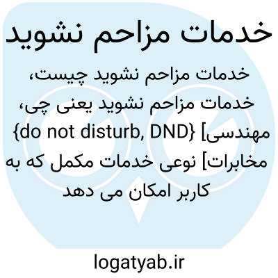 {do not disturb, DND} [مهندسی مخابرات] نوعی خدمات مکمل که به کاربر امکان می دهد تماس هایی را که از جانب یک کارساز پایۀ خاص گرفته می شود رد کند