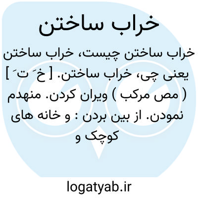 خراب ساختن. [ خ َ ت َ ] ( مص مرکب ) ویران کردن. منهدم نمودن. از بین بردن: و خانه های کوچک و بزرگ را خراب سازند. ( مجالس سعدی ). || مست کردن دیگری. بمستی سخت انداختن.
