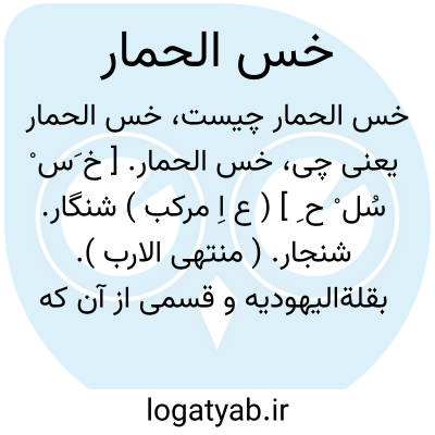خس الحمار. [ خ َس ْ سُل ْ ح ِ ] ( ع اِ مرکب ) شنگار. شنجار. ( منتهی الارب ). بقلةالیهودیه و قسمی از آن که دشتی باشد ضُنخُس نام دارد، انقلیا. حمیرا. خالوما. قالقس نوع کبیر شنجار. ( یادداشت بخط مؤلف ).