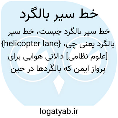 {helicopter lane} [علوم نظامی] دالانی هوایی برای پرواز ایمن که بالگَردها در حین عملیات، از درون آن به سوی مقصد پرواز می کنند و بازمی گردند