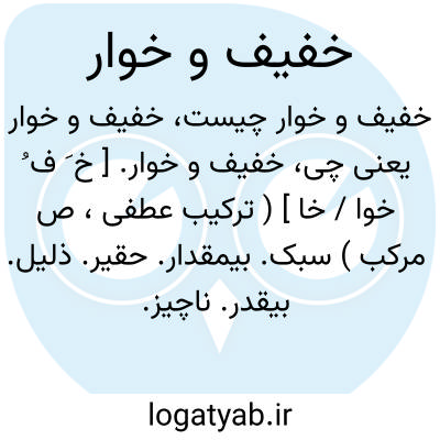 خفیف و خوار. [ خ َ ف ُ خوا / خا ] ( ترکیب عطفی، ص مرکب ) سبک. بیمقدار. حقیر. ذلیل. بیقدر. ناچیز. خوار. ( یادداشت بخط مؤلف ).