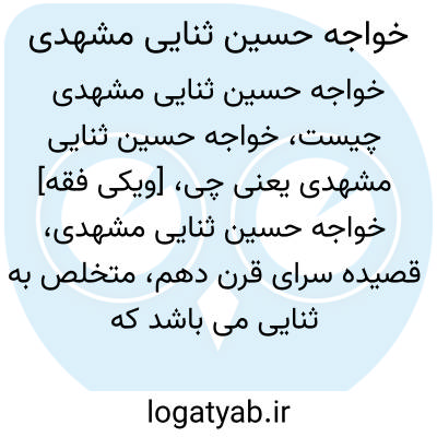 [ویکی فقه] خواجه حسین ثنایی مشهدی، قصیده سرای قرن دهم، متخلص به ثنایی می باشد که در مشهد به دنیا آمد. ولی امین احمد رازی نام او را جزو شاعران نیشابور آورده است.