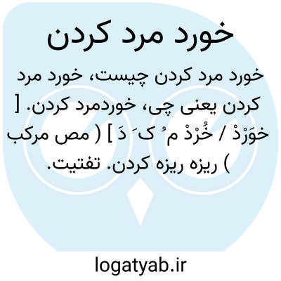 خوردمرد کردن. [ خوَرْدْ / خُرْدْ م ُ ک َ دَ ] ( مص مرکب ) ریزه ریزه کردن. تفتیت.
