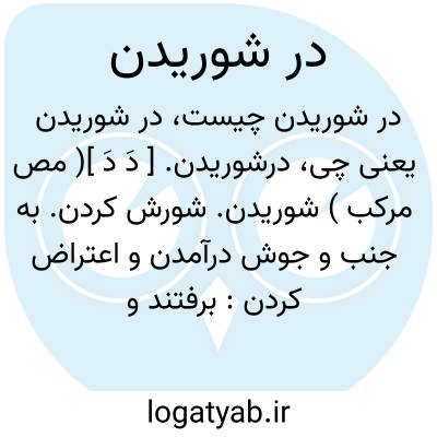 درشوریدن. [ دَ دَ ]( مص مرکب ) شوریدن. شورش کردن. به جنب و جوش درآمدن و اعتراض کردن: برفتند و با غلامان گفتند جمله درشوریدند... و سوی اسب و سلاح شدند. ( تاریخ بیهقی ). || بهم زدن. ( یادداشت مرحوم دهخدا ).