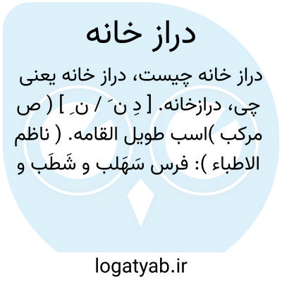 درازخانه. [ دِ ن َ / ن ِ ] ( ص مرکب )اسب طویل القامه. ( ناظم الاطباء ): فرس سَهَلب و شَطَب و شَطَبَة و شَوذَب؛ اسب درازخانه. ( منتهی الارب ).