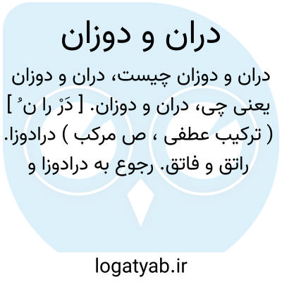 دران و دوزان. [ دَرْ را ن ُ ] ( ترکیب عطفی، ص مرکب ) درادوزا. راتق و فاتق. رجوع به درادوزا و درانه و دوزانه شود.
