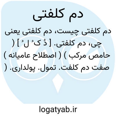دم کلفتی. [ دُ ک ُ ل ُ ] ( حامص مرکب ) ( اصطلاح عامیانه ) صفت دم کلفت. تمول. پولداری. ( یادداشت مؤلف ). رجوع به دم کلفت شود.