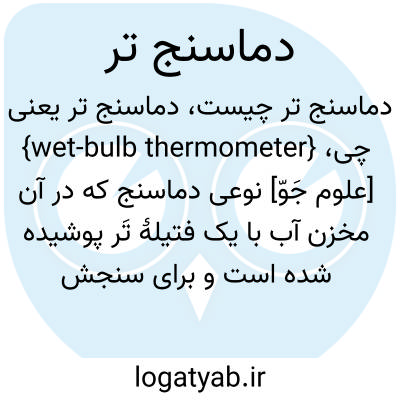 {wet-bulb thermometer} [علوم جَوّ] نوعی دماسنج که در آن مخزن آب با یک فتیلۀ تَر پوشیده شده است و برای سنجش رطوبت، دمای تَر را اندازه می گیرد