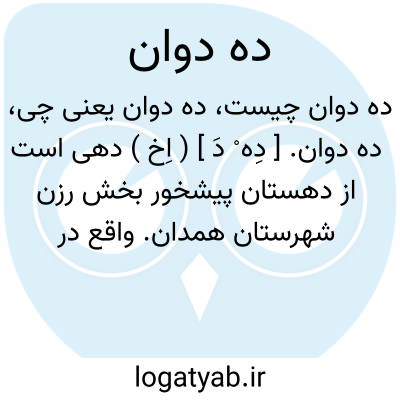 ده دوان. [ دِه ْ دَ ] ( اِخ ) دهی است از دهستان پیشخور بخش رزن شهرستان همدان. واقع در 44هزارگزی جنوب خاوری رزن. سکنه آن 188 تن. آب آن از رودخانه تأمین می شود. راه آن اتومبیل رو است. ( از فرهنگ جغرافیایی ایران ج 5 ).