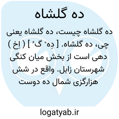 ده گلشاه. [ دِه ْ گ ُ ] ( اِخ ) دهی است از بخش میان کنگی شهرستان زابل. واقع در شش هزارگزی شمال ده دوست محمد نزدیک مرز افغانستان سکنه آن 158 تن. آب آن از رودخانه هیرمند تأمین می شود. ساکنین از طایفه ناروئی هستند. ( از فرهنگ جغرافیایی ایران ج 8 ).