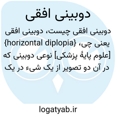 {horizontal diplopia} [علوم پایۀ پزشکی] نوعی دوبینی که در آن دو تصویر از یک شیء در یک صفحۀ افقی قرار می گیرد، خواه به صورت متقاطع خواه به صورت متقارن