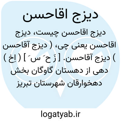 ( دیزج آقاحسن ) دیزج آقاحسن. [ زَ ح َ س َ ] ( اِخ ) دهی از دهستان گاوگان بخش دهخوارقان شهرستان تبریز با 75 تن سکنه. ( از فرهنگ جغرافیائی ایران ج 4 ).
