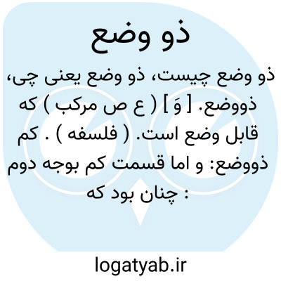 ذووضع. [ وَ ] ( ع ص مرکب ) که قابل وضع است. ( فلسفه ). کم ذووضع: و اما قسمت کم بوجه دوم: چنان بود که گویند: کم ذووضع باشد یا غیر ذی وضع. و وضع به سه معنی بکار دارند: یکی هر چه قابل اشارت حسی بود گویند آنرا وضع است. و به این معنی گویند نقطه را وضع باشد: و وحدت را وضع نبود، یعنی نقطه قابل اشارت بود، و وحدت از آن روی که وحدت باشد نبود. دوم هرچه آن را وجودی قار بالفعل بود و اتصال و ترتیبی، چون اجزاء او را با یکدیگر نسبت دهند آنرا وضع خوانند مثلاً گویند: مربع راوضعی است که ضلع او با زاویه او بر چه نسبت باشد. و زاویه او با ضلع برچه نسبت، و این وضع بحقیقت از مقوله اضافت بود. سوم هر چه آنرا اجزائی بود، و اجزاء آنرا با یکدیگر و با جهات عالم نسبتی بود و جمله را بسبب این نسبت هیأتی لازم شود، و این هیأت را وضع خوانند. و این وضع خود مقوله ای است به انفراد چنانک یاد کرده شد و غرض در این موضع وضع است بمعنی دوم که بعض کمیات را عارض شود. پس کم ذووضع یا خط بود یاسطح یا جسم و غیرذی وضع قارالذات بود یا نبود، اگر قارالذات بود عدد بود و اگر غیر قارالذات بود زمان بود. و عدد را وضع نیست بسبب آنک اتصال ندارد، و زمان را به سبب آنک قار نیست. ( اساس الاقتباس صص 41-42 ).