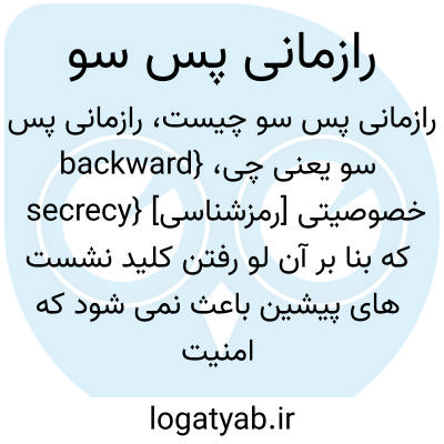 {backward secrecy} [رمزشناسی] خصوصیتی که بنا بر آن لو رفتن کلید نشست های پیشین باعث نمی شود که امنیت نشست کنونی به خطر بیفتد