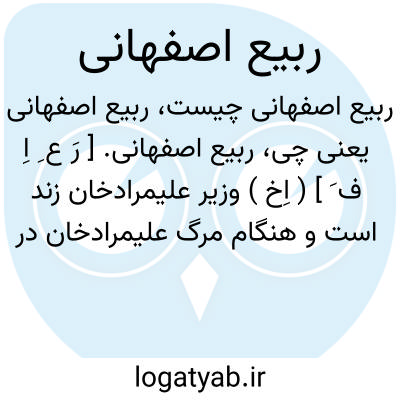 ربیع اصفهانی. [ رَ ع ِ اِ ف َ ] ( اِخ ) وزیر علیمرادخان زند است و هنگام مرگ علیمرادخان در سفرعزیمت به اصفهان از تهران ( سال 1199 هَ. ق. ) همراه وی بود و مرگ او را برای جلوگیری از تشویش سپاه پنهان بگذاشت و جنازه او را همچنان بر تخت روان تا اصفهان برد. رجوع به مجمل التواریخ گلستانه ص 287 شود.
