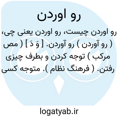 ( رو آوردن ) رو آوردن. [ وَ دَ ] ( مص مرکب ) توجه کردن و بطرف چیزی رفتن. ( فرهنگ نظام ). متوجه کسی شدن ورو کردن و رو نهادن. ( آنندراج ). اقبال: