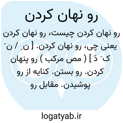 رو نهان کردن. [ ن ِ / ن َ ک َ دَ ] ( مص مرکب ) رو پنهان کردن. رو بستن. کنایه از رو پوشیدن. مقابل رو گشادن و رو بازکردن. ( از آنندراج ): دل از من برد و رو از من نهان کرد خدا را با که این بازی توان کرد.حافظ ( از آنندراج ).