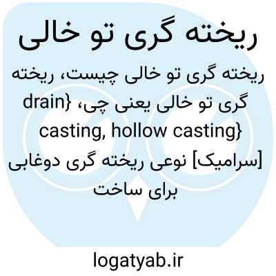 {drain casting, hollow casting} [سرامیک] نوعی ریخته گری دوغابی برای ساخت قطعه های توخالی، مانند قوری، که در آن دوغاب اضافی از قالب تخلیه می شود
