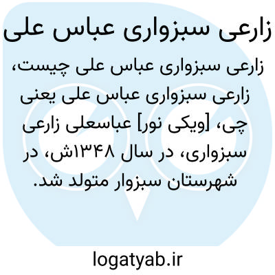 [ویکی نور] عباسعلی زارعی سبزواری، در سال 1348ش، در شهرستان سبزوار متولد شد.