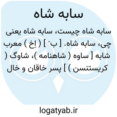 سابه شاه. [ ب َ ] ( اِخ ) معرب شابه [ ساوه ( شاهنامه )، شاوگ ( کریستنسن ) ] پسر خاقان و خال هرمز ( 579 - 590 م. ) بیست و دومین پادشاه ساسانی است که در سال 588 م. به ایران تاخت و از بهرام چوبین شکست خورد. رجوع به ساوه شاه و شابه شاه شود.